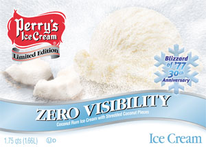 Buffalo, NY - There's a storm front moving into freezers across the region and the forecast is calling for Perry's Zero Visibility. Perry's Ice Cream, Buffalo's regional ice cream company located in Akron, N.Y., is digging out its blustery flavor in honor of the 30th anniversary of the Blizzard of '77.